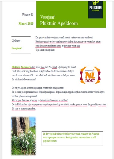 Vrijdag 15 maart bent u van harte welkom in Pluktuin Apeldoorn.